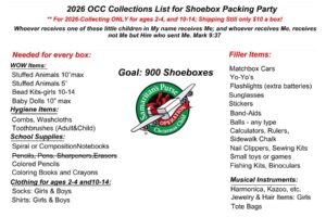 2026 OCC Collection List for Shoebox Packing Party